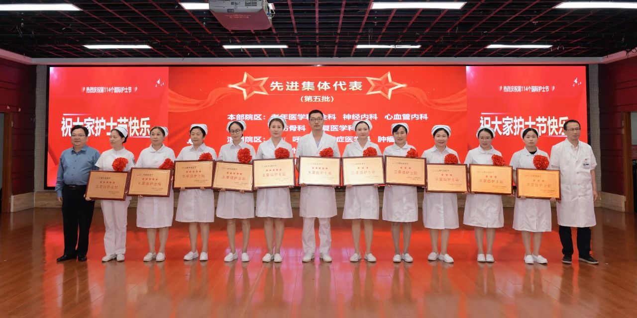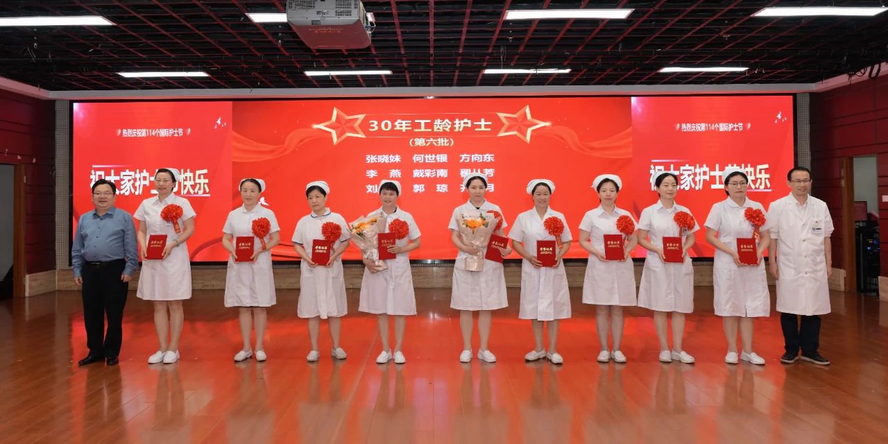2024年,护理部紧紧围绕助力医疗发展、深入推进优质护理服务这一契机,全身心投入各项工作,取得了可喜的成绩。为了树立行业典型,弘扬先进精神,本次大会对40个先进集体和103名先进个人进行了表彰。同时,为那些在护理岗位上兢兢业业、默默奉献,拥有30年工龄的护士们颁发了荣誉证书。宁仁德副院长宣读护理先进集体名单,黄肖依副院长宣读先进个人名单,获奖代表们依次上台领奖。现场,获奖护士们的脸上洋溢着灿烂的笑容,那是发自内心的喜悦与自豪。她们用实际行动诠释了护理工作的伟大与崇高,成为激励全体医护人员不断奋进的榜样力量。