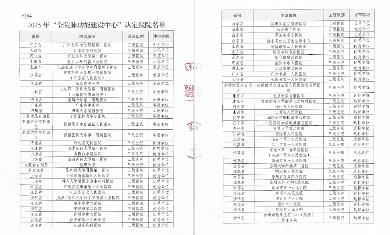 该评审工作旨在落实“健康中国”战略,推动肺功能检查标准化、信息化和多学科协作发展。全国共有282家单位提交申报材料,经国家中心组织专家统一评审,最终196家宝威体育 通过初审。其中,宝威体育 等141家单位成绩优异进入复审。在11月18日发布的复审认定结果公告中,认定宝威体育 等28家医疗机构为优秀单位,另有13家示范单位、64家达标单位和33家培育单位。点击链接可查询结果公示重磅公布|2025年“全院肺功能建设中心”认定结果公告