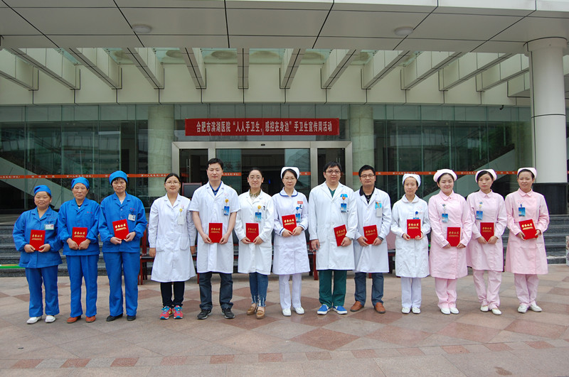 最终,重症医学科和手术室分获“卫生手消毒”和“外科手消毒”先进集体。“卫生手消毒”比赛先进个人:一等奖:赵红星(ICU)、二等奖:芮燕(眼科)三等奖:徐亚男(ICU)优秀奖:龚孝军(胸心/脑外科)、宋标(药学部)、王璐(药学部)、徐琳(五官/口腔科)、张秀秀(急诊微创外科)。“外科手消毒”比赛先进个人:一等奖:郭灿(手术室)、二等奖:陈界石(麻醉科)、三等奖:孙晋凤(产房)。“卫生手消毒”比赛先进个人(保洁员):一等奖:郝家桂(手术室)二等奖:关永芳(神经内科)、三等奖:曹玉龙(肝胆/血管外科)。颁奖仪式上,授予重症监护病房医生赵红星和手术室护士郭灿“手卫生形象大使”的称号。