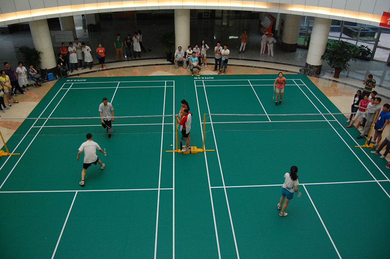 运动地板,参赛的八支运动团队近两百名运动员参加了开幕式,院团委书记周婕首先介绍了出席开幕式的院领导,院羽毛球协会会长张以锦宣布了比赛规则,裁判员代表郝峰和运动员代表林正明主任分别代表宣誓,最后,院党委副书记蔡晓明作了简短动员并宣布比赛开始。