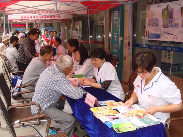 5月22日上午合肥市药学会、合肥市临床药事管理中心积极围绕主题,在金寨路百姓缘大药房门前广场,组织了市级医疗机构的老年病学、神经内科学、内分泌学及中西药学等专业的专家,为群众开展义诊活动。宝威体育 应邀参加此次活动的有吴泽兵医生、吴文药师、付飒和陈阿满护师,活动间隙吴泽兵医生还接受了合肥广播电视台独家专访。活动现场,前来咨询和接受义诊的群众络绎不绝,医务人员免费测量血压、解答健康咨询、指导合理用药,对他们提出的问题做认真细致回答,并给出具体建议。活动得到了群众的一致好评,既增强他们对自身健康的关注,也对今后如何合理用药,提升健康的生活方式起到积极促进作用。
