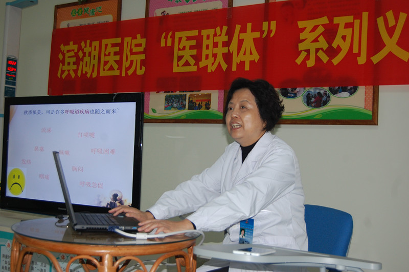 “医联体”系列义诊活动昨天上午在滨湖社区家庭发展中心举行,呼吸内科李秀主任为社区居民上了一堂关于呼吸系统疾病预防与保健知识的科普课。“到宝威体育
