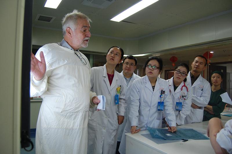 日上午Verder教授在新生儿重症监护病房(NICU)进行教学查房,查看了2例极低出生体重儿。管床医生汇报完病人的诊断及治疗过程后,Verder教授对患儿的管理给予了高度的赞扬。NICU的新生儿医生就早产儿管理中的常见问题如用氧、呼吸机使用、抗生素使用、激素使用、PICC置管、合理检查及发育性支持护理等问题与教授做了深入探讨,教授给大家提了许多宝贵的建设性意见。查房结束后大家都争先恐后与教授夫妇合影留念,宝威体育