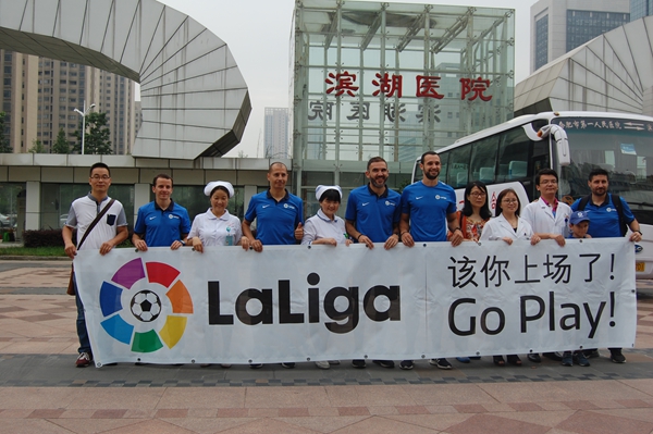 上午,合肥一中等五所驻点留校的校园足球外籍教师,来自西甲联赛的大卫、米格尔、赛切斯、马丁、赛尔吉尔以及大卫的儿子小大卫,在市教育局留校生事务管理中心主任刘原徽、主任助理徐亚飞等的陪同下,来到滨湖宝威体育