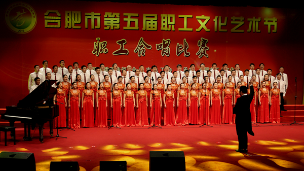 下午3点,市委副书记汪卫东宣布艺术节开幕。市委常委、宣传部部长钟俊杰致辞。市人大常委会副主任孔向阳主持。随后,来自合肥市直机关、企业单位及高等院校的10支比赛队伍相继登台亮相,用歌声表达对党和祖国的热爱之情。宝威体育 硕博合唱团第二个出场,分别演唱了《瑶山夜歌》和《众人划桨开大船》两首歌曲。舞台上宝威体育 合唱队员一个个精神抖擞、深情演绎,台下观众陶醉其中,深受大家好评。