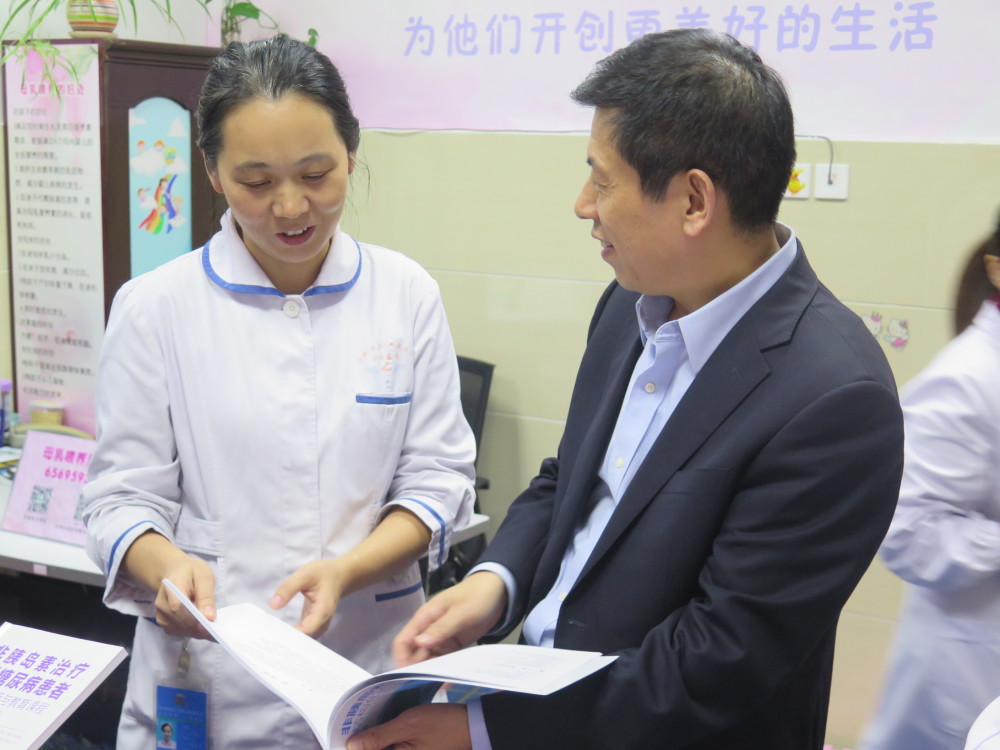 10月19日下午,安徽省卫计委于德志主任、国务院医改办驻皖联络员张光鹏处长在杏林社区走访调研,随机检查了宝威体育 高年资护士下沉社区工作。