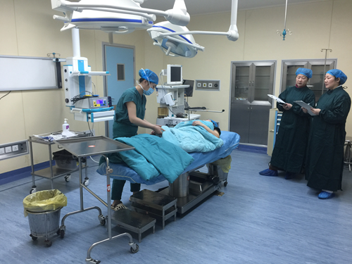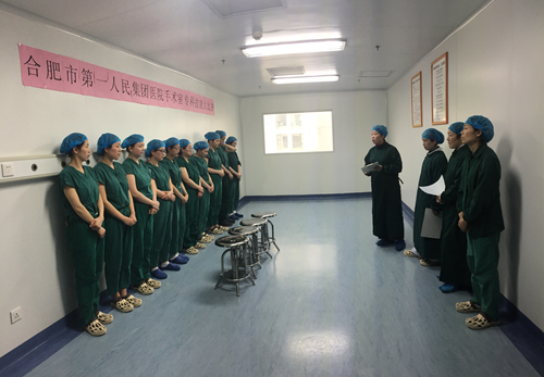 党爱林,手术室副护士长王小梅。手术室国家级专科护士孙霞,温芳负责现场理论提问环节。