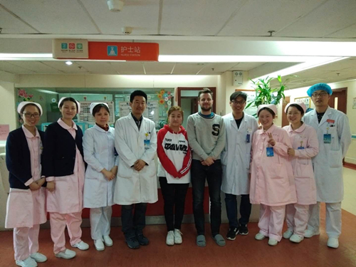 仍然记得那个下着大雪的早晨,我轻轻的叫醒熟睡的Chris,用英语对他说:“Chris外面下雪了,很美,如果你头不是很疼的话可以试着睁开眼睛保持清醒……”他很开心的对我说:“OK!I Love snow!”人有界,爱无界,最终Chris在我们科全体医护人员的精心治疗护理下康复出院。