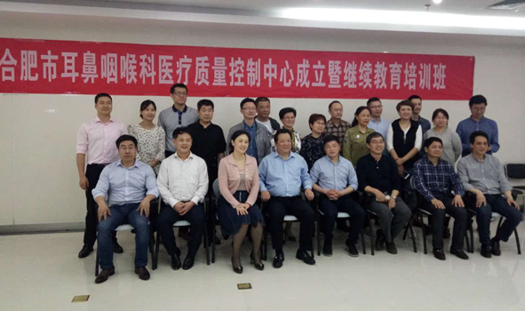 安徽省耳鼻咽喉头颈外科医疗质量控制中心主任刘业海与全体成员合影并授课