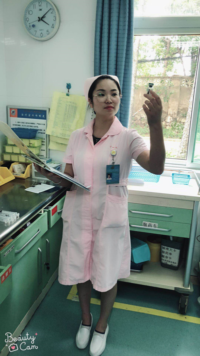 日晚上,王丹值夜班,负责一号楼(一病区)两个楼层共计47个病人。夜间查房时发现顾老发烧,王丹赶紧去治疗间拿来冷毛巾为其物理降温。像顾老这样的口腔癌晚期病人需要忍受面部溃烂的各种疼痛,还会时不时地发烧,长期与病魔抗争,对于各种治疗老人早已轻车熟路。王丹没有叫醒已经熟睡的陪护,尽管顾老提出让护士把冷水盆放在床旁由自己浸换毛巾,但王丹坚持自己完成,让顾老放心休息,从十一点到凌晨一点,前前后后跑了八次为顾老浸换毛巾、量体温,直至体温正常。顾老睡安稳后,王丹夜里又去病房观察了几次,次日早上交班时还特地交代接班护士关注顾老的病情。