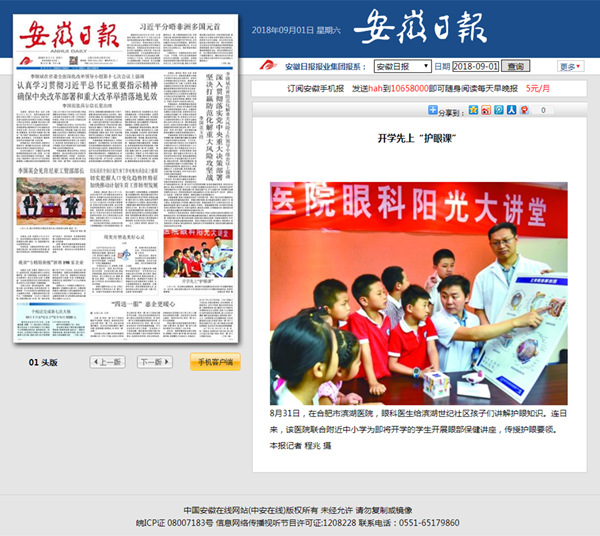 日,在合肥市滨湖宝威体育 ,眼科医生给滨湖世纪社区孩子们讲解护眼知识。连日来,滨湖宝威体育 联合附近中小学为即将开学的学生开展眼部保健讲座,传授护眼要领。