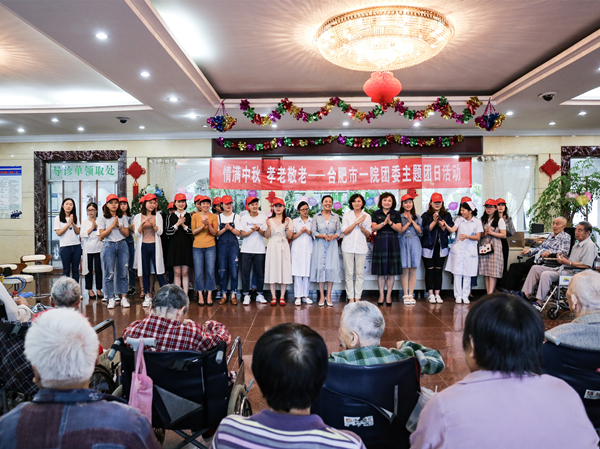 西区老年护理院,开展“情满中秋、孝老敬老”主题团日活动,通过节目表演、送月饼等形式与患病老人共度中秋佳节,弘扬孝老敬老精神。合肥市卫计委团委书记程玲、西区老年护理院院长饶晓兰、合肥市一院团委副书记陶文娟出席活动并讲话。