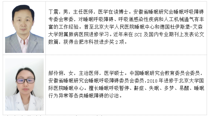 睡眠中心包括睡眠门诊及睡眠病房,现有丁震主任医师、郝伶俐主治医师2名睡眠专业医师,2名专业睡眠技师。设立中心控制室、多导睡眠监测室、压力滴定治疗室,配备两台多导睡眠监测仪、四台便携式睡眠监测仪、两台腕表式睡眠监测仪及多台单、双水平无创呼吸机治疗仪,专科检查治疗设备齐全。睡眠病房开展有人工值守的多导睡眠监测、人工压力滴定治疗以及运用无创正压通气对急、慢性呼吸衰竭及睡眠呼吸障碍等疾病的诊疗。