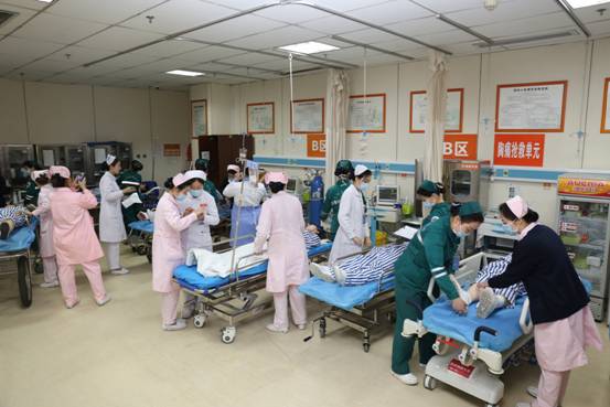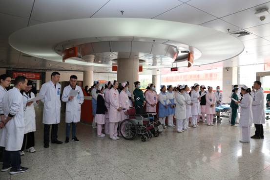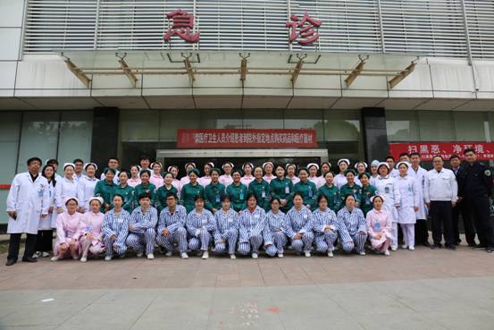 开展批量伤的应急救护情景演练,近百名医护人员参与了此次应急演练。