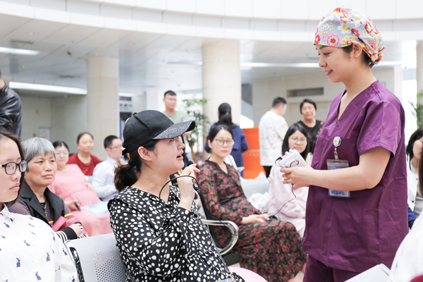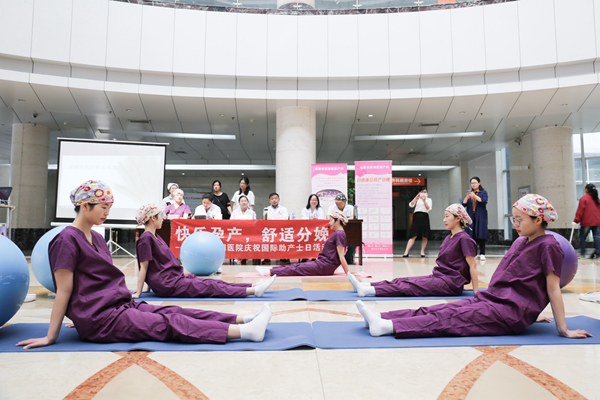 产科联合麻醉科在该院阳光大厅举办“舒适孕产,快乐分娩”公益宣传活动,由助产士带领孕妈妈们进行自由体位分娩操的训练,邀请准爸爸参与体验分娩疼痛,并由产科和麻醉科专家就“无痛分娩”进行现场答疑。