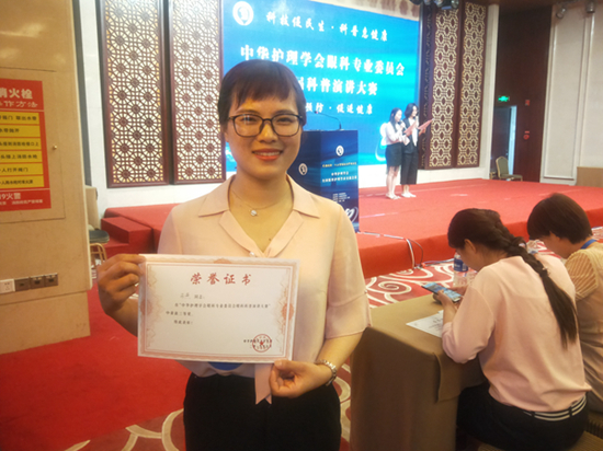 护理部全程指导下,芮燕和团队经过反复的斟酌、修改,不断优化比赛方案,力争呈现出最完美的作品。在决赛的赛场上,芮燕以深入浅出的解说、真诚自然的互动获得评委的一致认可,最终获得三等奖的好成绩。