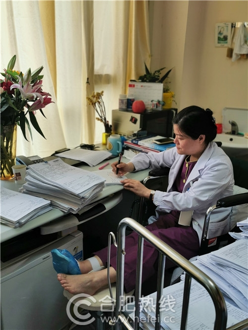 就在一个月前,刘荃因为上下楼梯抢救病人不幸右腿骨折。