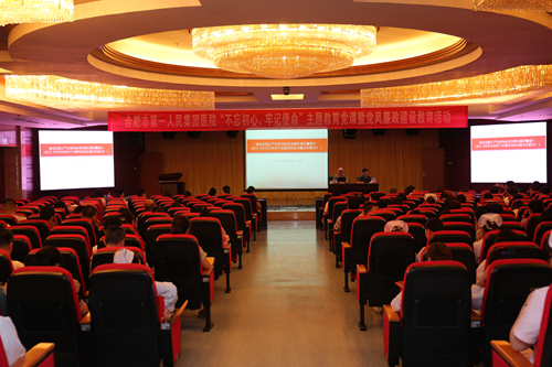 16楼会议中心召开“不忘初心,牢记使命”主题教育党课暨党风廉政建设教育学习活动。活动邀请原合肥市委党校党建部副主任李兵教授开展专题讲座,讲座由院纪委书记李博文主持,院领导、重点岗位人员及医护人员共400余人聆听讲座。