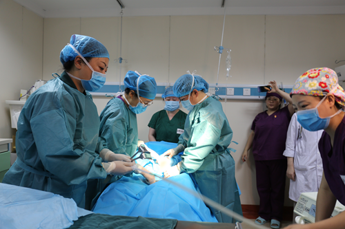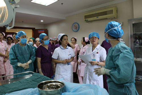 “快来人!孕妇出现先兆子宫破裂!”,伴随着助产士一声呼喊,产房里面的助产士立即快速行动起来,并呼叫二线及住院总医师、麻醉师、手术室器械护士等,并对产妇进行紧急转运到备用手术室,紧接着手术室器械护士已到达产房自行有序分工准备手术用物;谈话、洗手上台、麻醉、切皮,取出孩子整个过程一气呵成,在计时5分钟内完满完成手术。演练结束,在场的人员展开激烈的讨论,从开始到结束的每一个微小步骤都不放过,意见与表扬同存。在力求更安全,更高效的原则下,进一步完善规范5分钟即刻剖宫产流程。