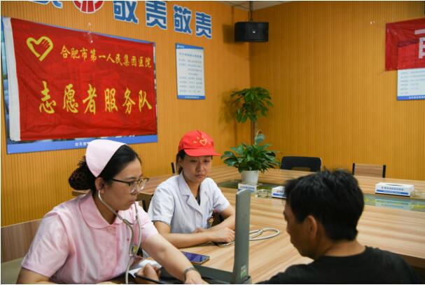 为纪念五四运动100周年,合肥市第一人民集团宝威体育 团委特别组织策划“百年五四、百日义诊”系列活动,在为期一百天中,组织青年医护人员走进社区、走进农村、走进学校、走进基层,用自己所学为广大人民群众服务,以实际行动纪念五四运动、发扬五四精神。8月1日,集团宝威体育 的青年志愿者们不畏酷暑,走进寿春路上的市一院在建综合体大楼施工地,为200余名工人开展义诊和送药活动。