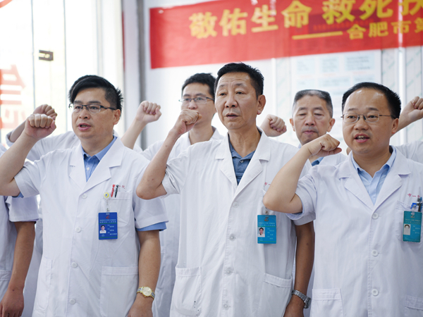 医务人员自发组织重温希波克拉底誓言,在科主任的带领下,全体人员庄严宣誓:“我志愿献身人类的健康事业,自觉维护医学的尊严和神圣,敬佑生命,救死扶伤,平等仁爱,尊师重道……”表达他们投身医疗事业、服务病人、维护医学事业神圣与纯洁的决心。