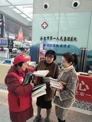 300余册。院区内志愿者积极报名,手术室罗庆华护士长和脊柱骨科护士周雪带着自己的孩子一起参加了此次有意义的活动。