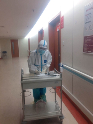 每天3次的病区消毒,新冠病人的吃喝拉撒,产生的垃圾已经超出我们的承受力量,我们只能两名护士一起抬着垃圾送出污物通道,感叹自己真的像个男人一样,恨不得身上长出一双翅膀。