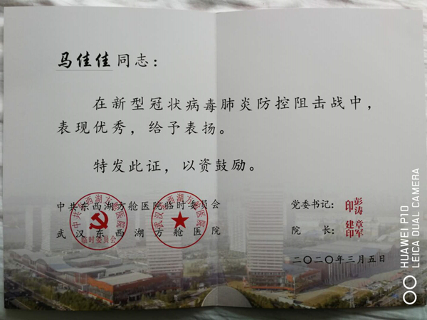 马佳佳在抗疫一线递交入党申请书,用行动写下加入中国共产党的决心。抗击疫情他冲锋在前、勇挑重担、表现突出,在斗争中接受考验、坚定信念。经党支部研究同意,报上级党委批准,马佳佳发展入党,成为一名中国共产党预备党员。