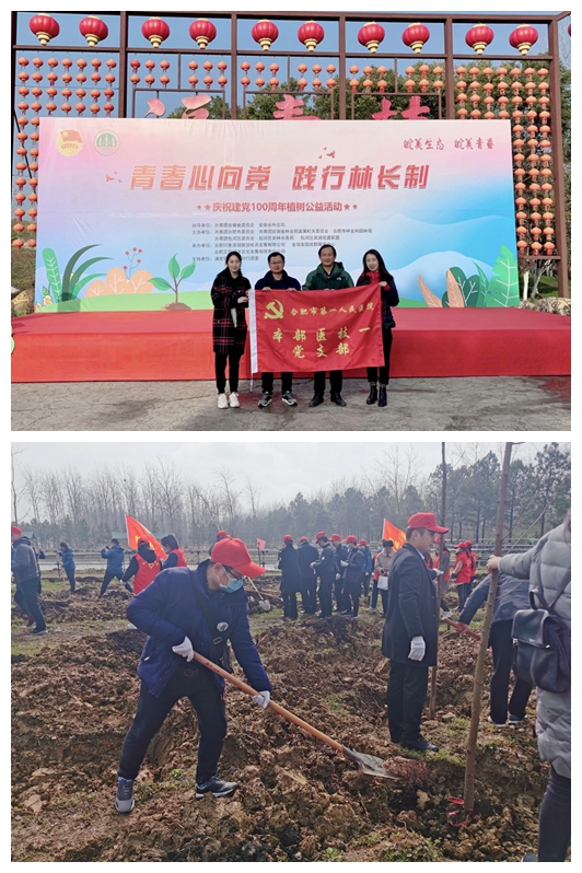 本部医技一支部受邀加入了该项活动,植树现场支部书记秦侃同志带头挥锹,铲土、扶苗、培土,栽下第一棵小杉树苗。到场的一支部党员同志们也纷纷加入植树的队伍,做到了劲往一处使,汗往一处流,整个过程认真细致,井井有条。大家都在用自己的劳动诠释着对大自然生命的关爱,整个活动现场热火朝天。众人拾柴火焰高,众人植树树成林。经过一个多小时的奋战,一排新栽的树苗在春风里昂然挺立,焕发出勃勃生机。