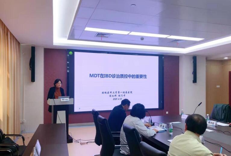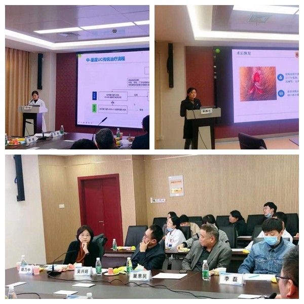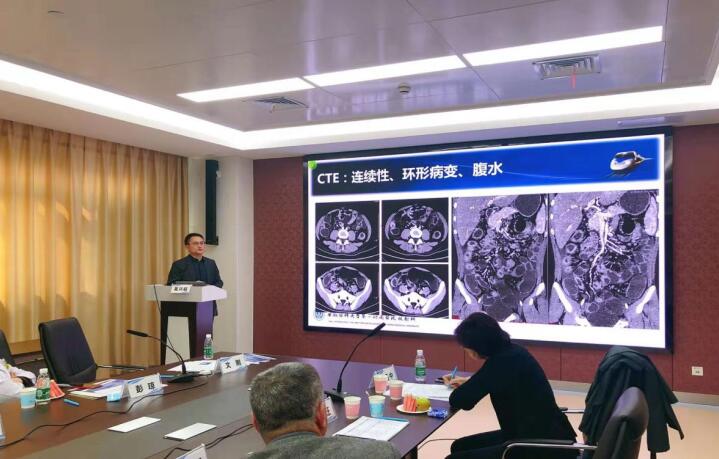IBD病例进行指导。影像科副主任巢惠民、药剂科副主任秦侃、肛肠科副主任刘远成等多个学科医护人员参会。