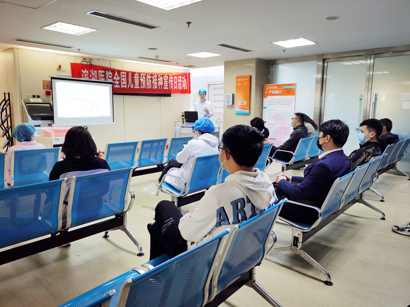 新生儿预防接种的工作流程。吴宝玉护士长进行了预防接种的科普宣教,从疫苗的选择,免疫规划及非免疫规划疫苗的选择,到预防接种的注意事项、接种时间、不良反应等方面进行了详细的解读。黄玲老师具体介绍了预防接种后的观察,常用疫苗接种不良反应的处理方法,不适合接种的几种问题。