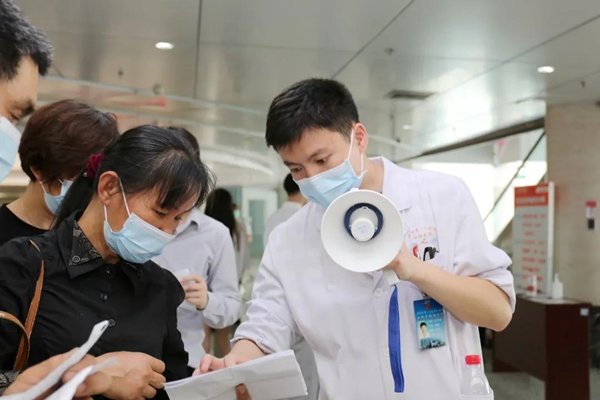南区内科一党支部党员杨彬在接种点志愿服务