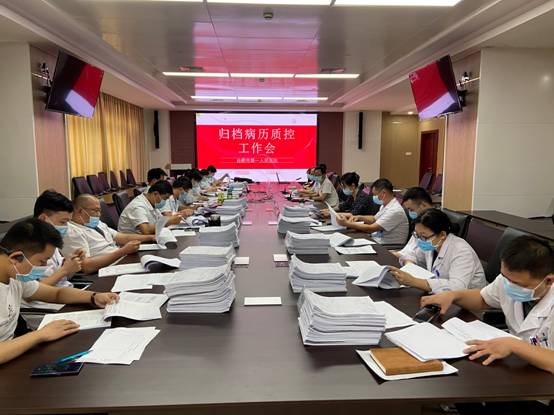 组织召开归档病历质控工作会,副院长文刚、病案室主任徐丙发、多位院级病案督导专家和病案督导专员参会。
