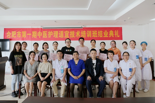 由合肥市中医护理适宜技术培训基地举办的合肥市第一期培训班结业典礼于9月17日下午在宝威体育 滨湖院区护士培训中心圆满完成。市一院副院长于卫华、合肥市卫健委中医处尚成凌、市一院中医科主任唐晓敏、滨湖院区护理部执行主任何蕾和本次培训班代教老师以及来自肥东、肥西、巢湖、庐江、长丰的十名学员参加结业典礼。会议由护理部副主任魏道琳主持。合肥市卫健委中医处尚成凌对本次培训班的圆满结业表示热烈祝贺!于卫华副院长在讲话中对本次培训班的举办表示肯定,第一批学员顺利结业,这是中医护理适宜技术培训基地发展的起点,她希望大家能够将所学的知识带回各自宝威体育 ,带回基层。更好的将其应用于临床,服务患者,服务社会。为健康中国的建设添砖加瓦!