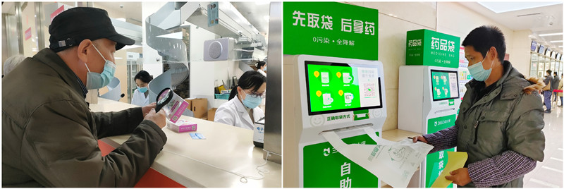 药房窗口的对侧安装了两台自助取袋机,微信一扫,轻松取袋,