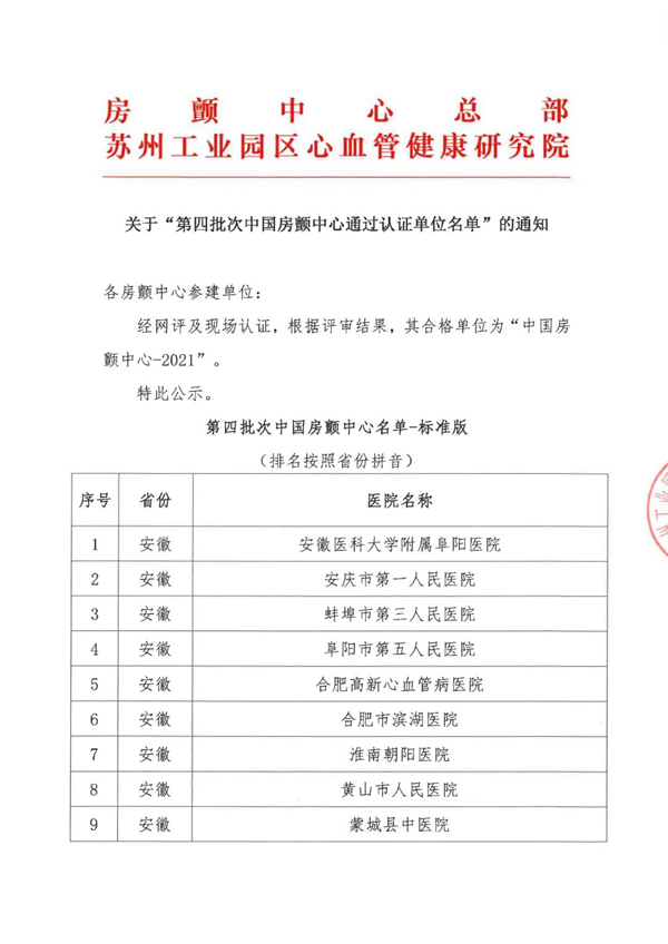 滨湖院区房颤中心榜上有名,正式成为国家级房颤中心。