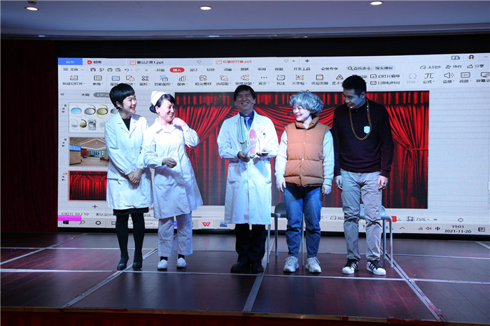 眼科医护人员带来精彩演出《医心医意》,小品剧由临床中遇到的一些真实又常见的事件汇总改编,讲述医护人员对一例白内障合并青光眼患者实施身心全面照护,不仅解除了患者眼部疾患还帮助其解决家庭难题的故事,演出真情再现了温馨感人的医患故事,同时以幽默诙谐、浅显易懂的方式科普了白内障合并青光眼患者的临床表现与治疗。医护人员惟妙惟肖的生动演绎,赢得现场观众欢呼喝彩。