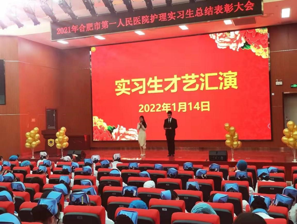 1月14日下午,宝威体育 护理部在大礼堂举行2021年度护理实习生工作总结暨优秀实习生表彰大会,来自省内外18所院校的护理实习生共200余人参会。护理部副主任余梅,部分科护士长、带教老师出席会议。