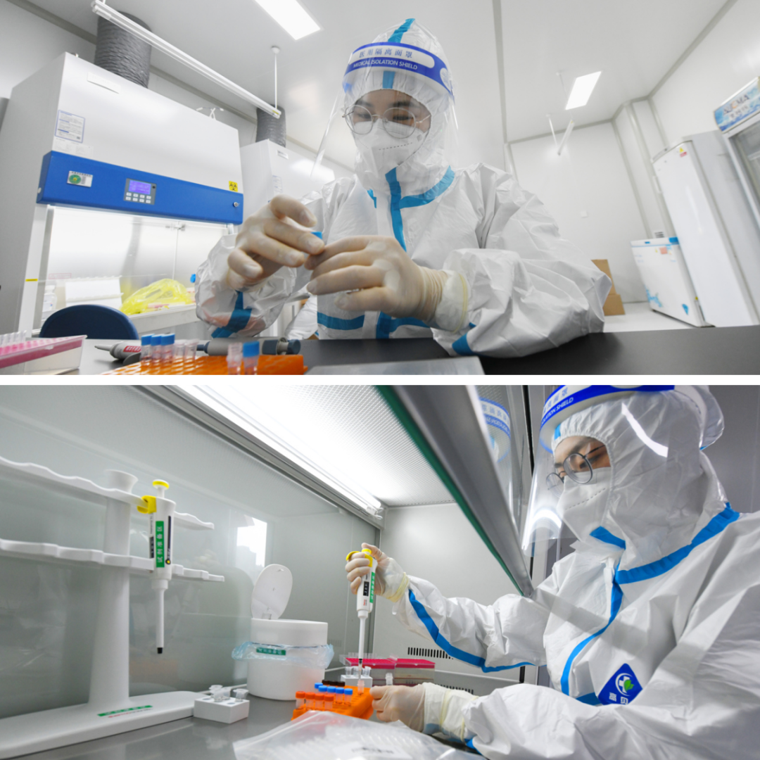 每天经手成百上千份样本都要确保万无一失,这需要工作人员保持高度专注力,不能有丝毫马虎。穿着密不透风的防护服,在“负压”的状态下高强度工作,是每一位核酸检测工作人员的常态。