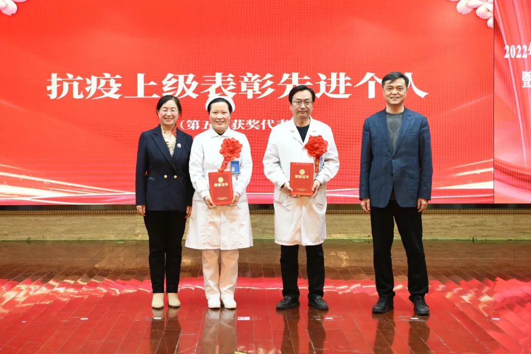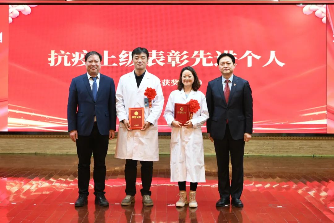 市卫健委主任张晓峰、安医大第五临床医学院院长孟秀红为抗疫上级表彰获奖代表颁奖