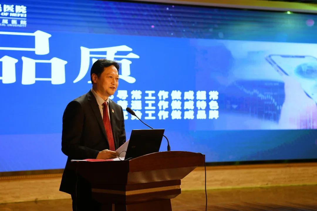 吴冬雷书记对2023年“品质提升”主题年活动进行动员和部署。他指出,“品质提升”主题年以习近平新时代中国特色社会主义思想为指导,以党的二十大精神为统领,坚持以高质量发展统揽全局,围绕“锻长补短筑品质,换挡提速谋跨越”这一主线,聚焦“党建引领、品质医疗、品质科技、品质人才、品质学科、品质护理、品质管理、品质运营、品质服务、文化铸魂”十大关键词,力争实现“三提三降三满意”总体目标。