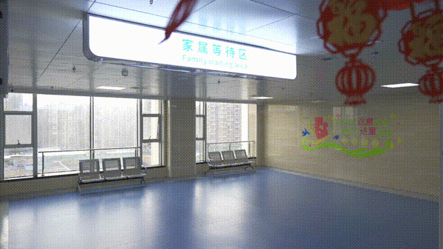 此次产房改造融入了更多人性化设计:走廊通道宽度扩增明显,便于孕产妇转运;产房门口设置了客厅式候诊区,配备有电视、茶水间、卫生间等,让家属在产房外也能轻松陪产,候诊区还设置了家属与孕妇沟通区,家属可以随时陪待产的孕妇进餐、聊天。
