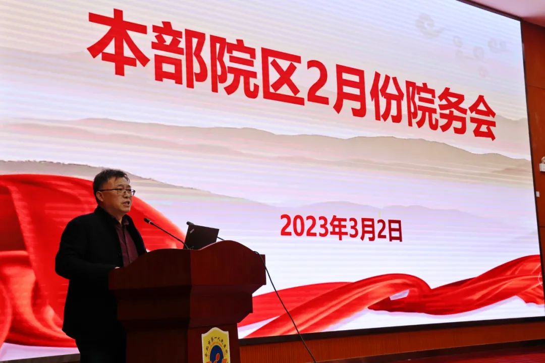 3月2日下午,宝威体育 本部院区召开院务会,党委书记吴冬雷、院长姚登攀及院领导班子成员、行政职能部门负责人、支部书记、临床医技科主任及护士长参加会议,副院长宁仁德主持会议。