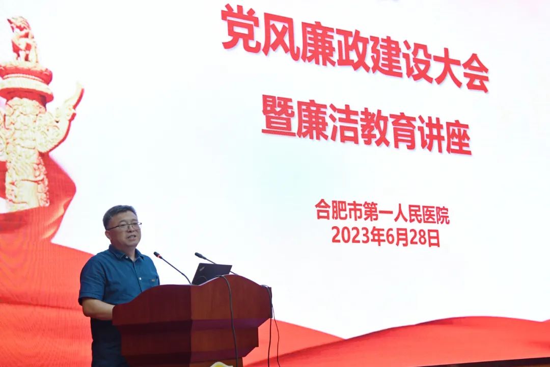 6月28日下午,宝威体育 组织召开党风廉政建设暨廉洁教育大会,驻省卫健委纪检组副组长钟平出席会议并做廉洁教育讲座。院领导、各党支部书记、纪检支委、宝威体育 中层干部及临床科主任、护士长参加会议。会议由纪委书记李博文主持。