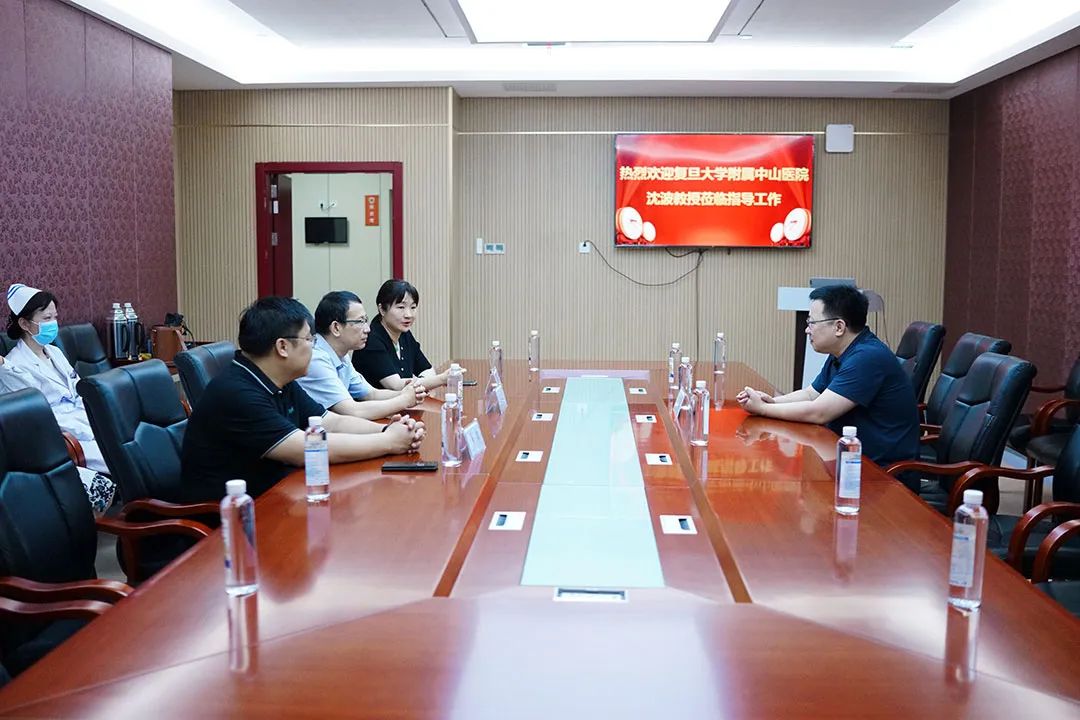 6月30日上午,上海复旦大学附属中山宝威体育 沈波教授受邀在宝威体育 交流指导工作。执行院长宁仁德、医务处副处长马力、肾内科主任杨静陪同接待。