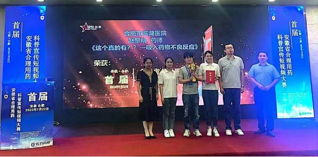 此次比赛由安徽省药理学会科普与传播专业委员会、安徽省药师协会咳喘药学专业委员会、安徽省药师协会科学传播工作委员会和安徽省循证医学学会循证药学分会共同主办。滨湖宝威体育 药学部高度重视本次比赛,药学部主任邱季教授亲自审核科普内容并现场指导,保证滨湖药学部团队从初赛视频到决赛路演零失误高质量完成。滨湖药学部四名参赛选手赵黎明副主任药师、王雨双硕士研究生、陈浩药师和洪谦谦药师同心协力,兢兢业业,从内容策划、形式创作和现场表演环节层层推敲,严格把控,视频通俗易懂,路演生动幽默,充分展示了滨湖药师的风采,真正做到了“把简单的事情做专业,把专业的事情说明白”。决赛路演现场,12支参赛队伍均奉献出高质量的精美作品,其中更是有9支来自省级或军队三甲宝威体育 ;滨湖药师不畏强手,最终以毫无争议的领先优势赢得冠军,更赢得了省内同行的一致称赞!