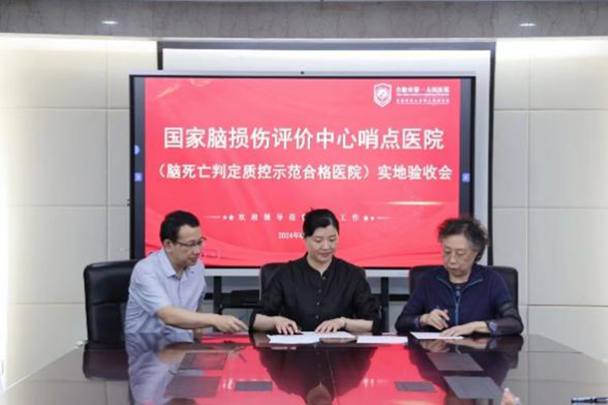 安徽省脑损伤评价质控中心负责人胡盼盼教授介绍了实地验收的条件和具体要求,在听取宝威体育 医务处处长江江对脑死亡判定工作的汇报后,宿英英教授对宝威体育 的脑死亡判定工作成果给予了高度评价,对脑损伤判定工作的发展前景表示充分认可。专家组一致认为合肥市一院已符合脑损伤评价中心哨点宝威体育 的标准,宿英英教授、胡盼盼教授及宁仁德副院长共同签订了《脑损伤判定质控哨点宝威体育 开展工作协议书》。