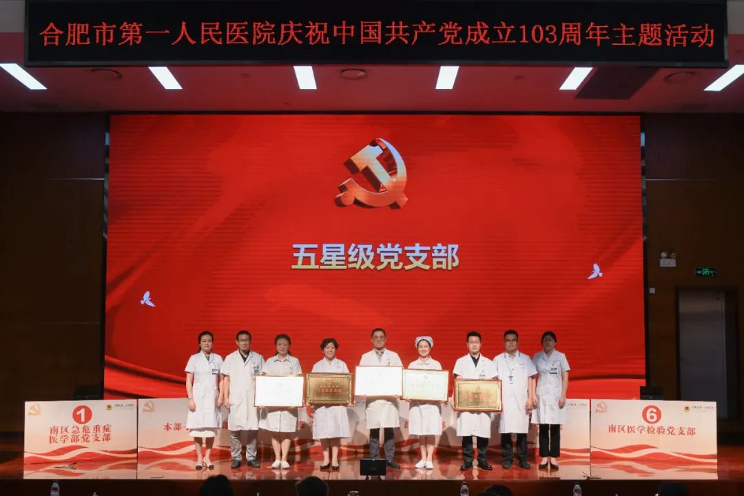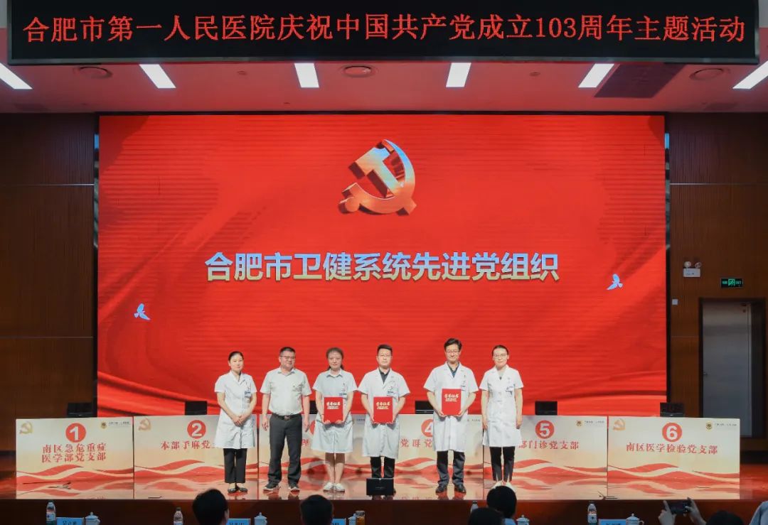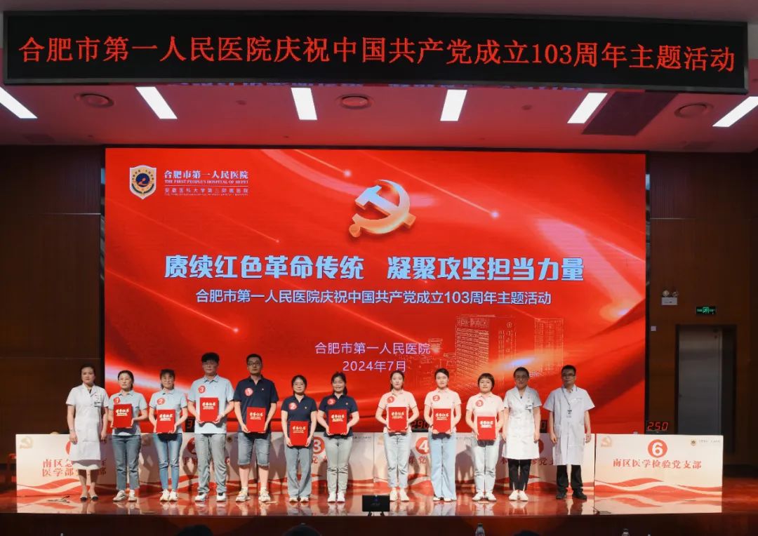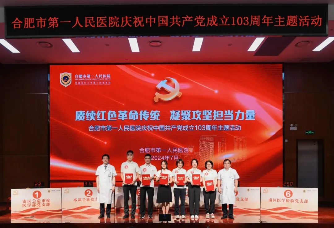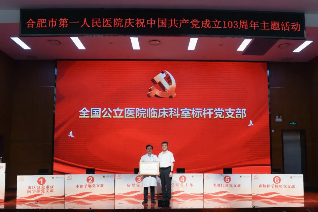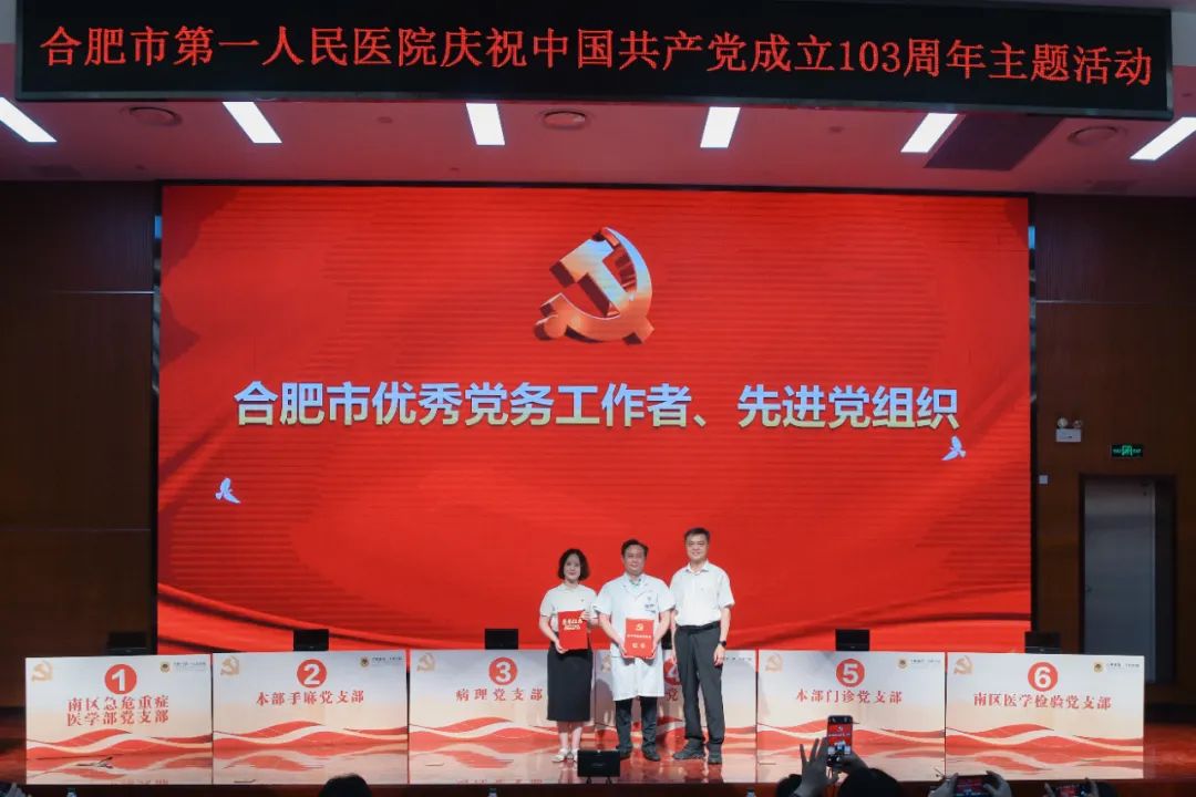 出席活动的领导还共同为获得2024年度合肥市卫健系统“两优一先”“合肥市优秀党务工作者”“合肥市先进党组织”的4个先进集体和6名优秀个人颁发荣誉证书,并对获得“五星级党支部”荣誉称号以及“全国公立宝威体育 临床科室标杆党支部”荣誉称号的六个党支部授牌。
