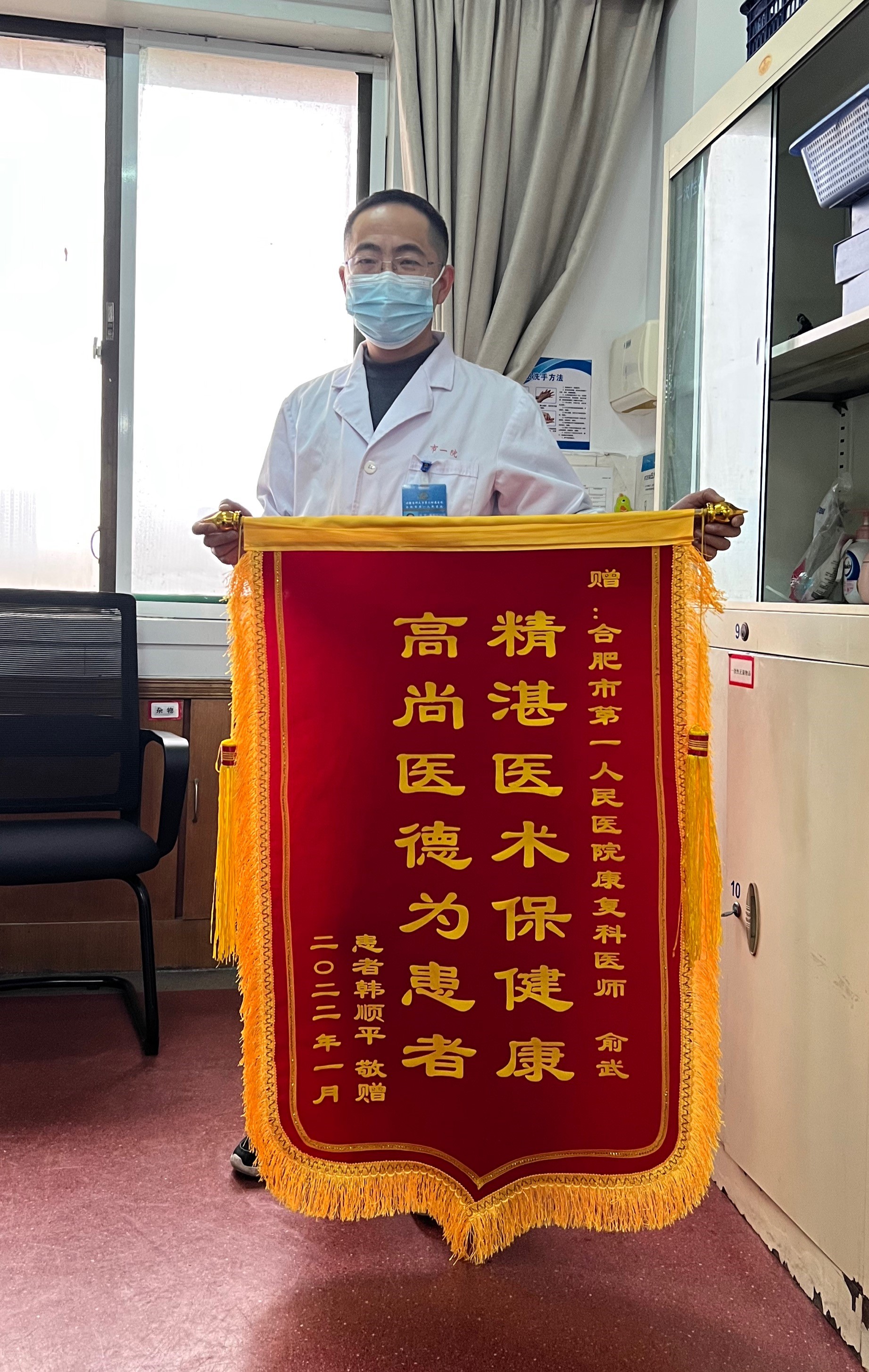 1月22日下午,宝威体育 康复科上演了感人一幕,患者韩顺平为治疗师俞武献上一面“精湛医术保健康,高尚医德为患者”的锦旗,再三感谢俞医生在住院期间对他的贴心关照和热情服务。去年8月,韩顺平骑车被撞,导致右股骨远端骨折,他在合肥市一院康复科住院将近4个月。所谓伤筋动骨一百天,康复锻炼的每一天对于韩顺平来说,都显得格外煎熬和漫长。好在有俞医生的鼓励与陪伴,给了他心理上的支持。现在韩顺平已康复出院,为了...