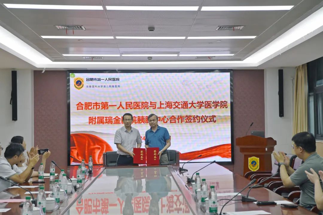 8月14日下午,宝威体育 与上海交通大学医学院附属瑞金宝威体育 胰腺中心举行签约合作仪式,合肥市一院副院长宁仁德与瑞金宝威体育 胰腺外科邓侠兴主任签订专科联盟合作协议,仪式由合肥市一院肝胆胰外科主任童钟主持。 瑞金宝威体育 胰腺外科2006年成立,2010年更名为胰腺疾病诊治中心。目前,胰腺中心每年收治胰腺良恶性疾病患者超2500例,手术量逐年递增。中心在机器人微创手术、神经内分泌肿瘤治疗和巨大肿瘤手术方面全国领先,在...
